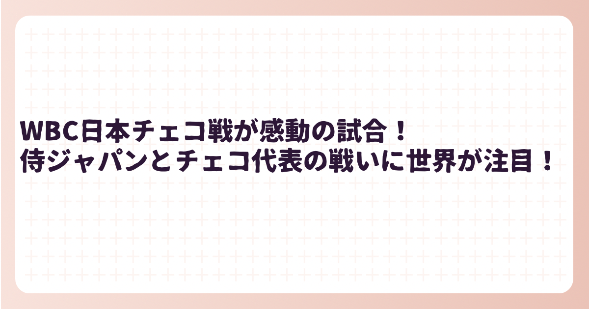 投手陣はチェコ打線を最後まで抑え、WBC日本チェコ戦の投手陣は完封リレーでチームを支えた投球でした。