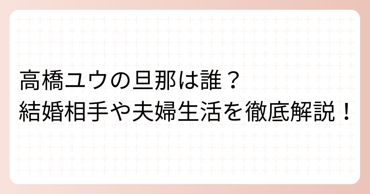 高橋ユウさんの結婚相手や夫婦生活について、詳しく調べてみました。