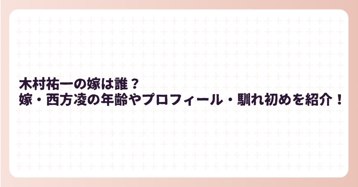 そこで今回は、木村祐一さんの嫁である西方凌さんの年齢やプロフィール、さらに結婚の馴れ初めや家族構成について詳しく紹介します。