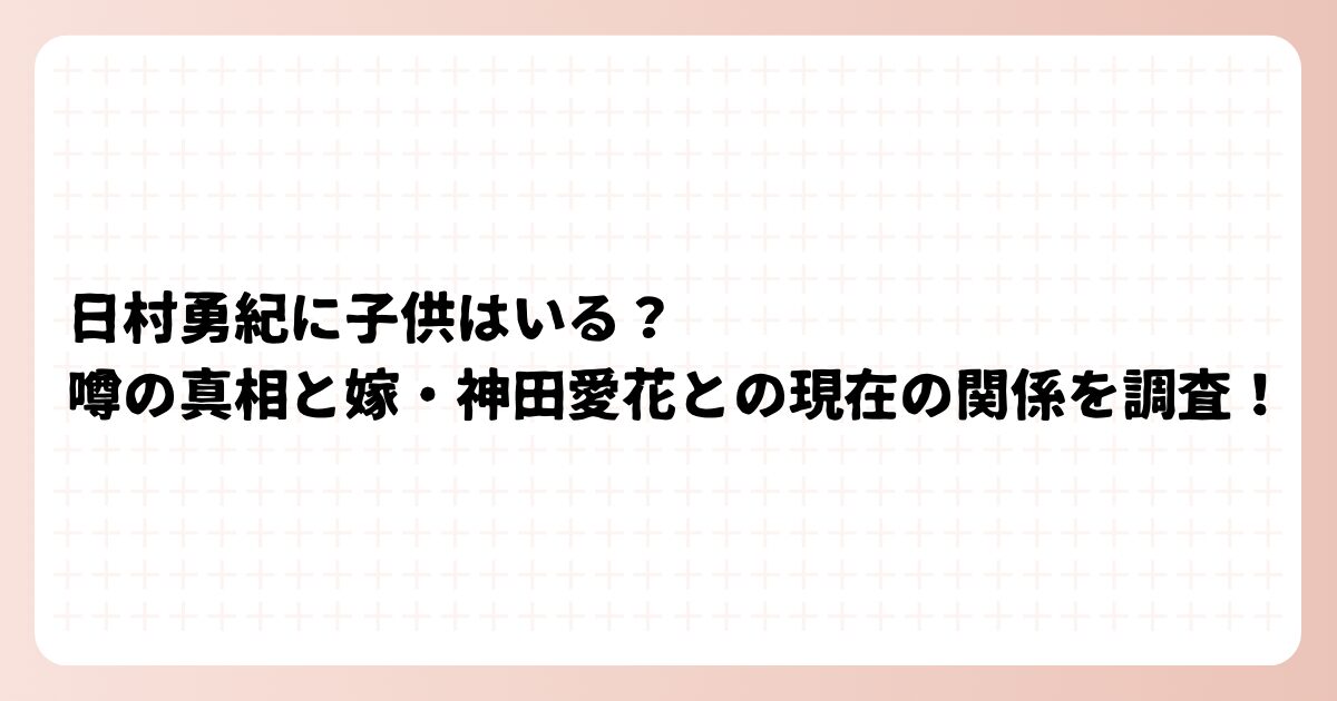 今回は、日村勇紀さんの子供の有無や、神田愛花さんとの関係について詳しく解説していきます。
