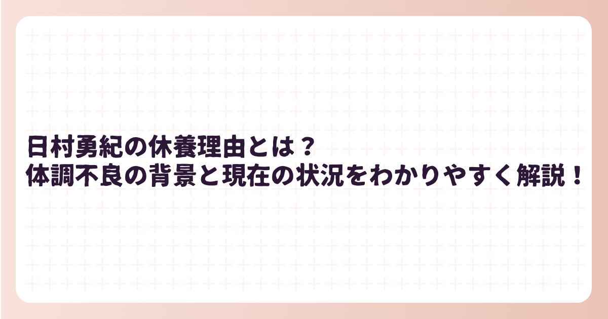 そんな日村勇紀さんですが、今回の休養理由や体調不良の背景はどのようなものなのでしょうか。