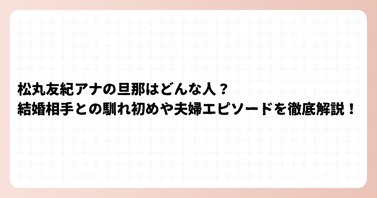明るく親しみやすいキャラクターで人気の松丸友紀さんですが、旦那様はどんな人で、どのような馴れ初めや夫婦エピソードがあるのでしょうか。