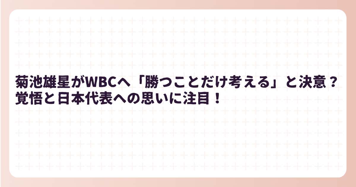 菊池雄星投手が、ワールド・ベースボール・クラシック(WBC)での日本代表の敗退を受け、日本球界への提言を語り注目を集めています。